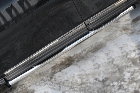 Пороги Russtal представляют собой накладки, выполненные в форме труб, которые создаются специально для конкретной модели автомобиля. В своем производстве специалисты ведущей российской компании используют полированную нержавеющую сталь итальянского производства. Данный материал отличается стойкостью к образованию коррозии, не боится механических и ударных нагрузок, сохраняет первоначальные качества и внешний вид на протяжении всего периода эксплуатации.