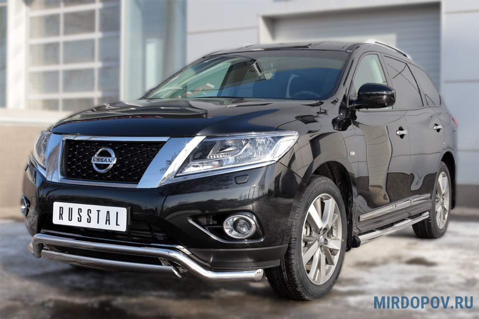 Пороги труба d76 с накладкой вариант 2 RUSSTAL Nissan Pathfinder (2014-2017) № NPT-0020212