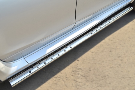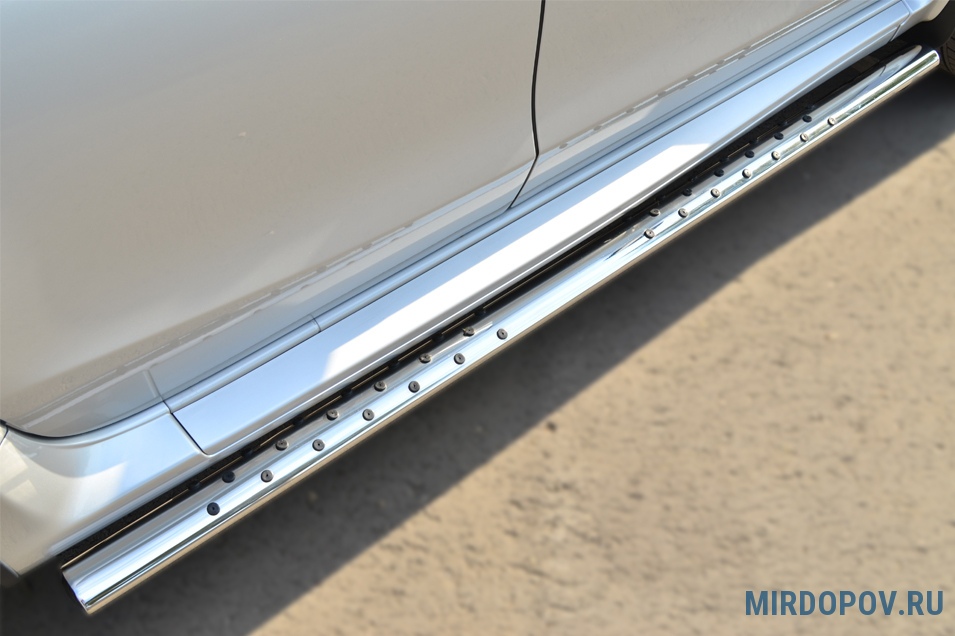 Пороги Russtal представляют собой накладки, выполненные в форме труб, которые создаются специально для конкретной модели автомобиля. В своем производстве специалисты ведущей российской компании используют полированную нержавеющую сталь итальянского производства. Данный материал отличается стойкостью к образованию коррозии, не боится механических и ударных нагрузок, сохраняет первоначальные качества и внешний вид на протяжении всего периода эксплуатации.