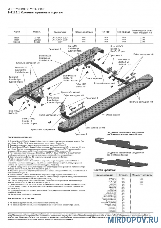 | Установка порогов (комплект) | от 4500 руб. |