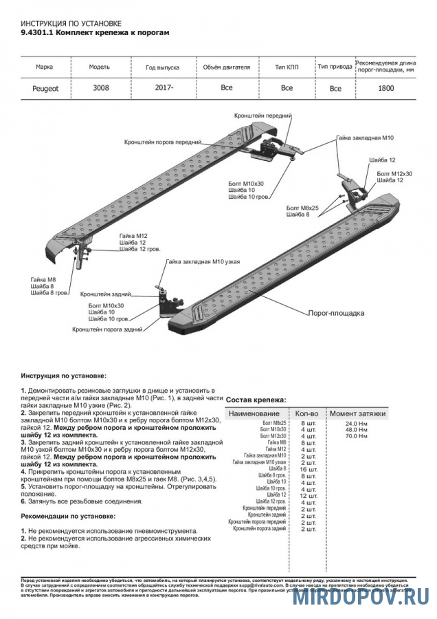 - Простота установки за счет точного совпадения штатных отверстий с элементами крепежа защиты.