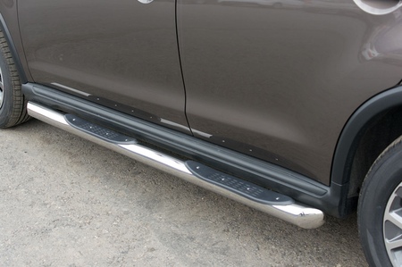 Пороги Russtal представляют собой накладки, выполненные в форме труб, которые создаются специально для конкретной модели автомобиля. В своем производстве специалисты ведущей российской компании используют полированную нержавеющую сталь итальянского производства. Данный материал отличается стойкостью к образованию коррозии, не боится механических и ударных нагрузок, сохраняет первоначальные качества и внешний вид на протяжении всего периода эксплуатации.