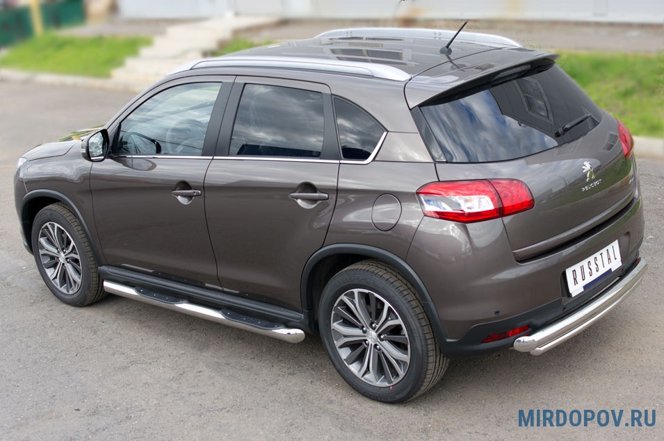 Пороги труба d76 с накладками вариант 1 RUSSTAL Peugeot 4008 (2012-2016) № P48T-0005351
