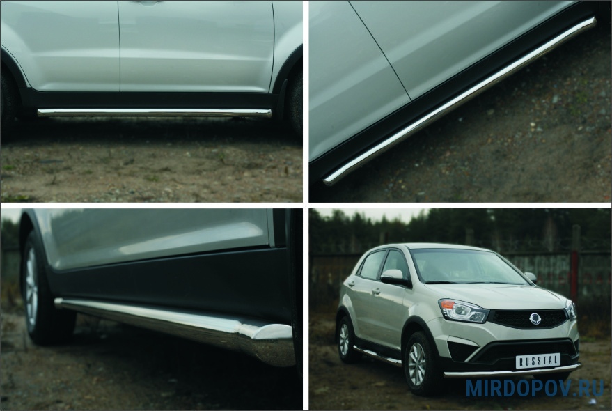 Пороги труба d63 вариант 1 RUSSTAL SsangYong Actyon (2014-2018) № SYAT-0019751