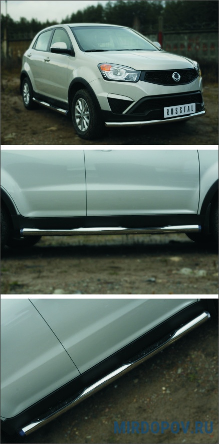 Пороги труба d76 с накладкой вариант 2 RUSSTAL SsangYong Actyon (2014-2018) № SYAT-0019762