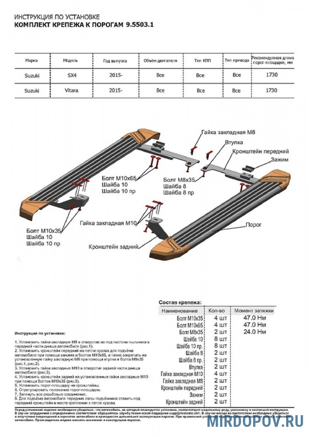 Пороги Rival могут использоваться на всех автомобилях, независимо от модельного ряда. Аксессуары полностью отвечают высоким международным стандартам качества. Также продукция соответствует требованиям, регламентируемым системой менеджмента качества ISO 9001:2008