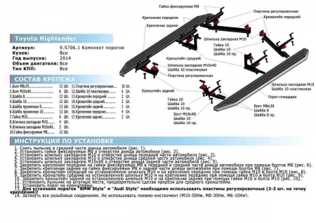 Пороги алюминиевые Bmw-Style Toyota Highlander (2014-2019) № D180AL.5706.1