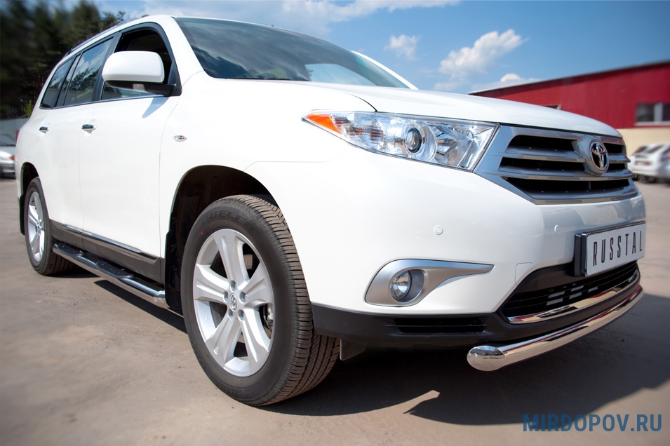 Пороги труба d76 с накладками вариант 1 RUSSTAL Toyota Highlander (2010-2013) № THT-0007361
