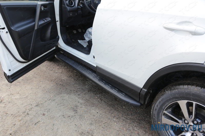 Пороги алюминиевые с пластиковой накладкой KARBON черные Toyota Rav 4 (2015-2019) № TOYRAV15-19BL