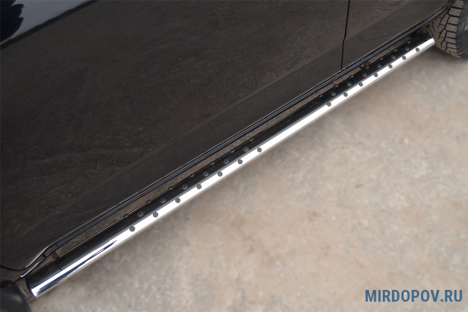 Пороги Russtal представляют собой накладки, выполненные в форме труб, которые создаются специально для конкретной модели автомобиля. В своем производстве специалисты ведущей российской компании используют полированную нержавеющую сталь итальянского производства. Данный материал отличается стойкостью к образованию коррозии, не боится механических и ударных нагрузок, сохраняет первоначальные качества и внешний вид на протяжении всего периода эксплуатации.