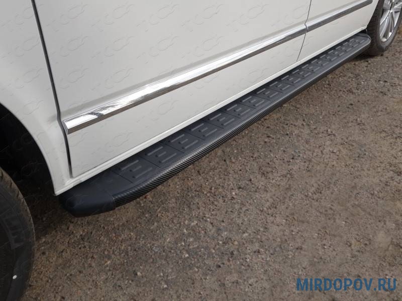 Пороги алюминиевые с пластиковой накладкой KARBON черные Volkswagen Multivan (2015-2020) № VWMULT15-13BL