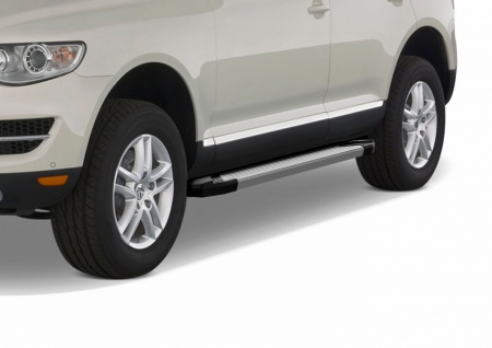 Пороги алюминиевые Silver для Volkswagen Touareg без пневмо подвески (2002-2010) № F193AL.5809.1