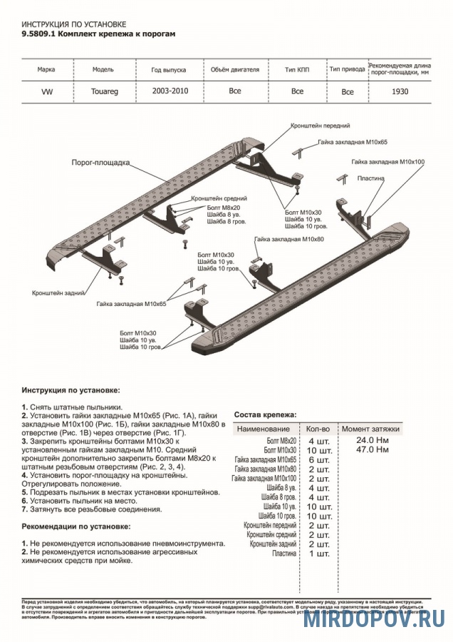 | Комплект | 2 порога, крепеж, инструкция |