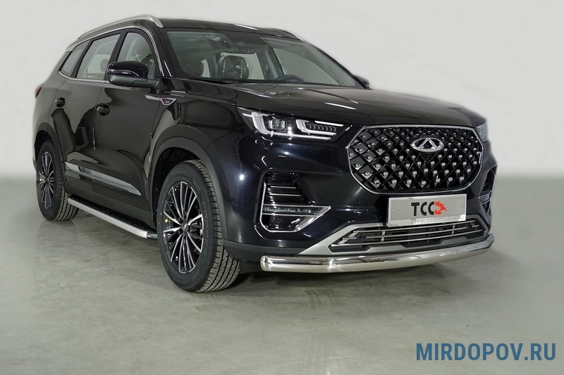 Защита переднего бампера 75х42 мм ТСС для Chery Tiggo 8 Pro (2021-2025) № CHERTIG8P21-30