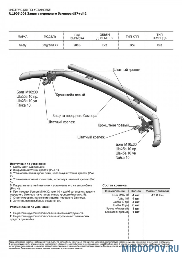 | Защита переднего бампера | 4000 руб. |