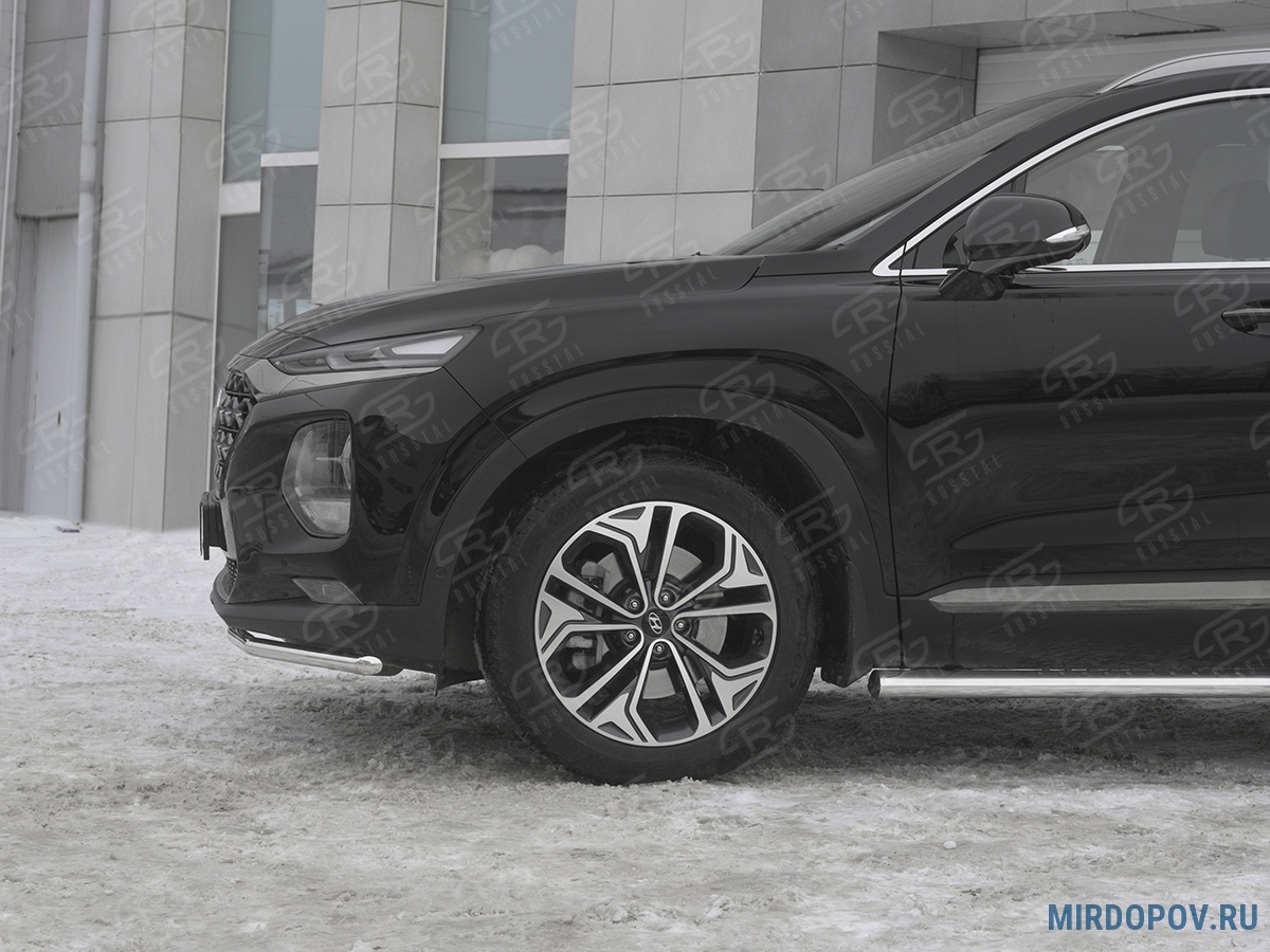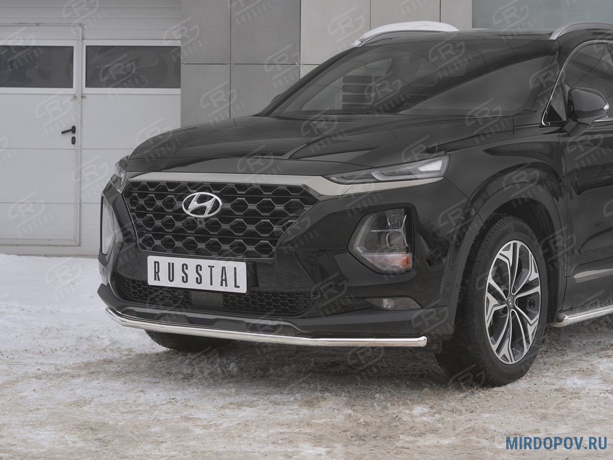 Защита переднего бампера d42 секции RUSSTAL Hyundai Santa Fe (2018-2020) № HSFZ-003165