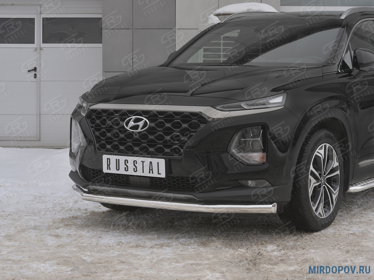 Защита переднего бампера d63 секции RUSSTAL Hyundai Santa Fe (2018-2020) № HSFZ-003167