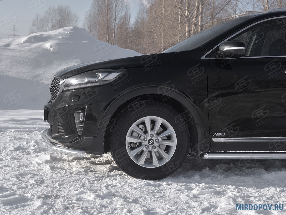 Защита переднего бампера d63 секции-d42 дуга RUSSTAL Kia Sorento Prime (2018-2020) № KSPZ-003135