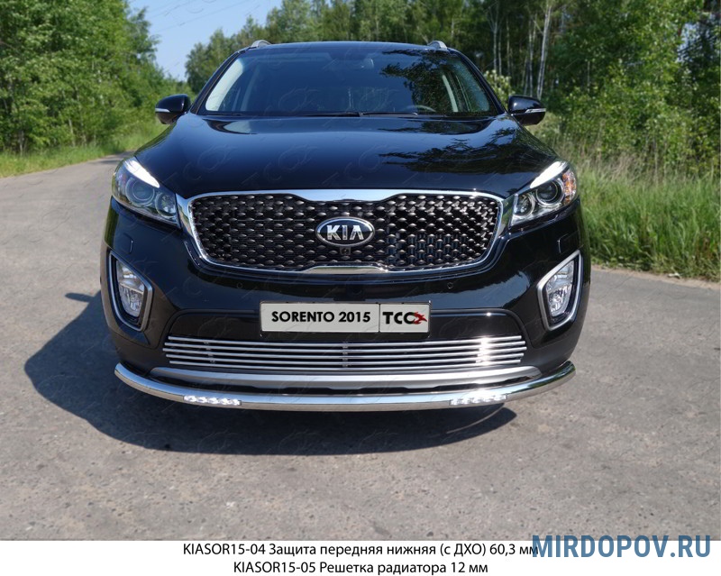 Защита передняя (труба 60,3 мм с ДХО) Kia Sorento (2015-2018) № KIASOR15-04