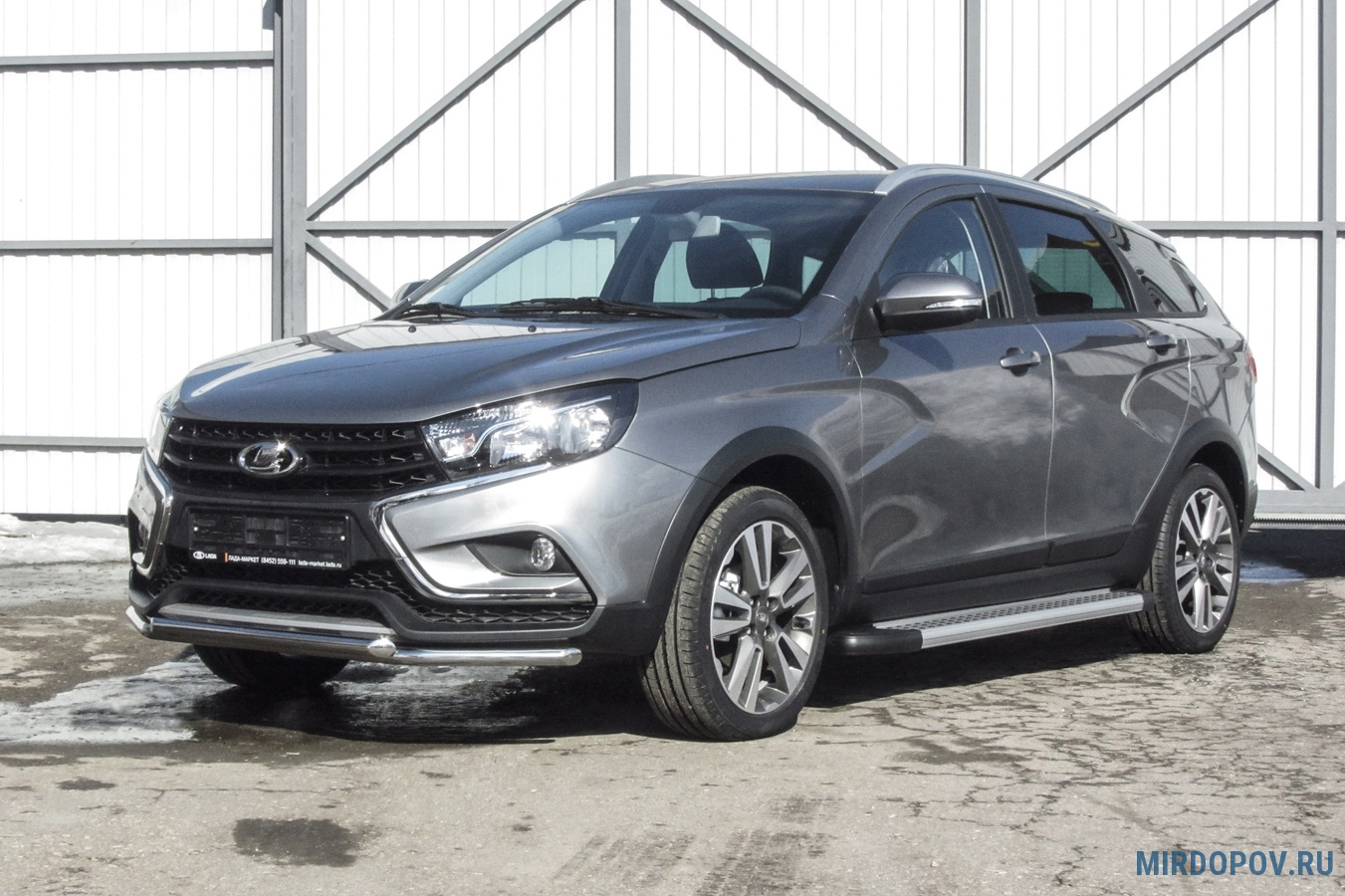 Защита переднего бампера d42 + d42 двойная Lada Vesta sw Cross (2017-2024) № LadVSWCR02