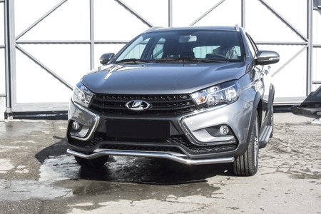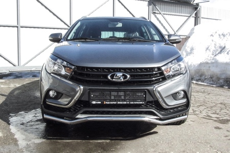Защита переднего бампера d42 волна Lada Vesta sw Cross (2017-2024) № LadVSWCR01