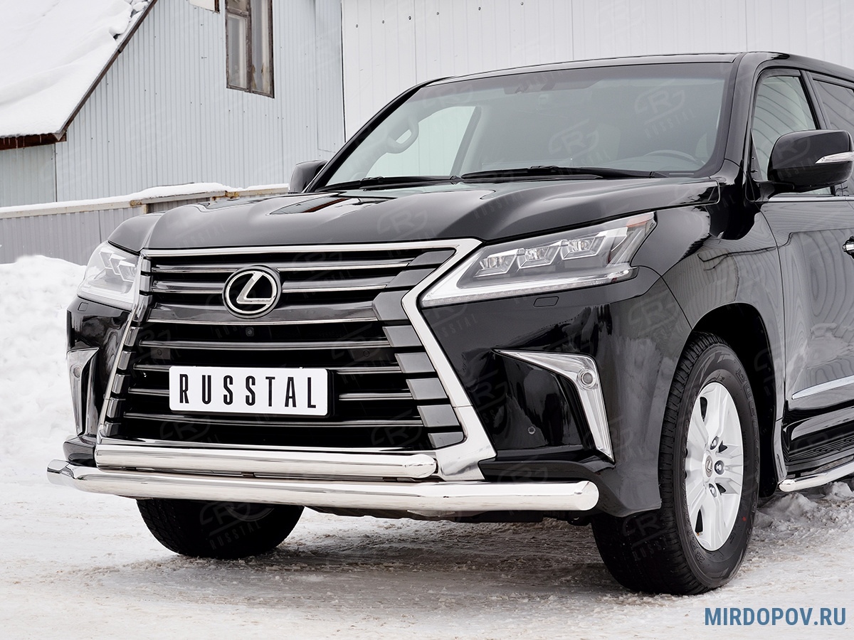 Защита переднего бампера d76 секция-d63 дуга RUSSTAL Lexus LX (кроме F-Sport) (2015-2022) № LLX4Z-002517