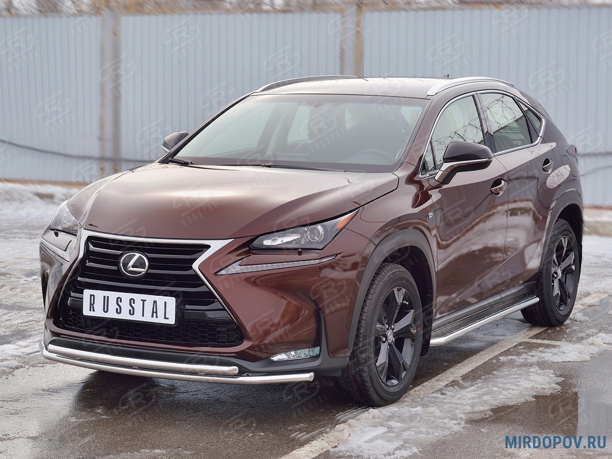 Защита переднего бампера d42 секции-d42 дуга RUSSTAL Lexus NX 200 (кроме F-Sport) (2014-2016) № LNXZ-002575