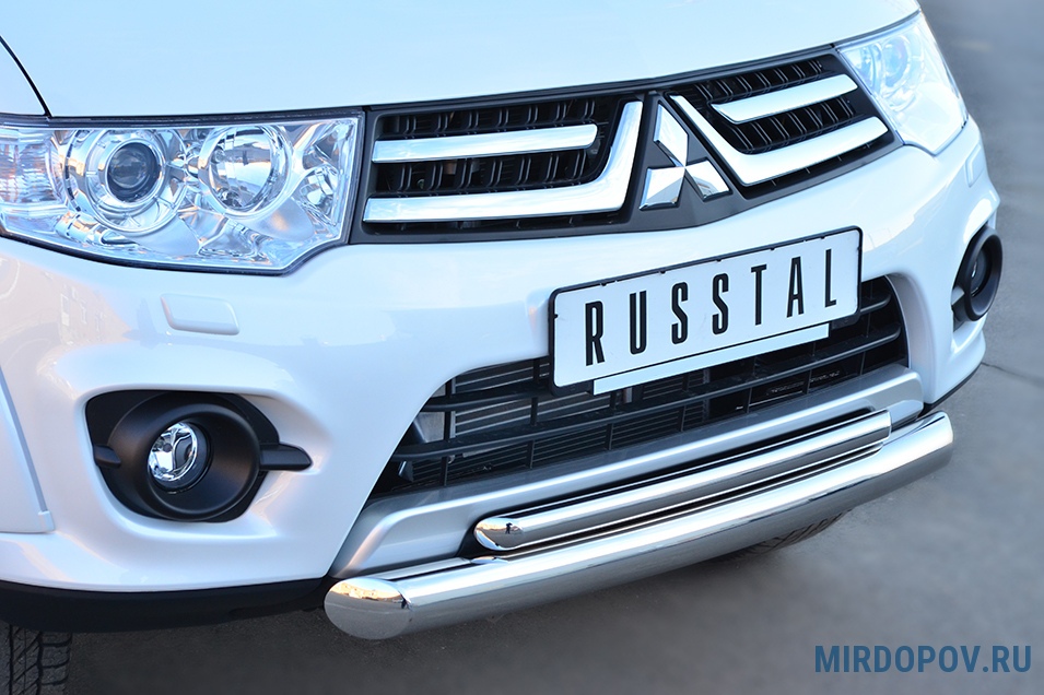 Защита переднего бампера d76 дуга d42 дуга RUSSTAL Mitsubishi Pajero Sport (2013-2015) № MPSZ-001577