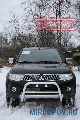 Защита передняя мини d60 низкая с перемычкой d42 Mitsubishi Pajero Sport (2008-2014) № MIPS.56.0774