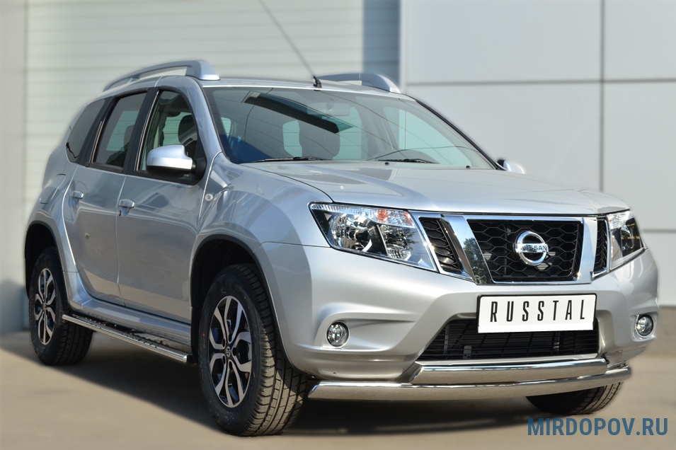 Защита переднего бампера d75х42 дуга d75х42 дуга RUSSTAL Nissan Terrano (2014-2023) № NTRZ-001785