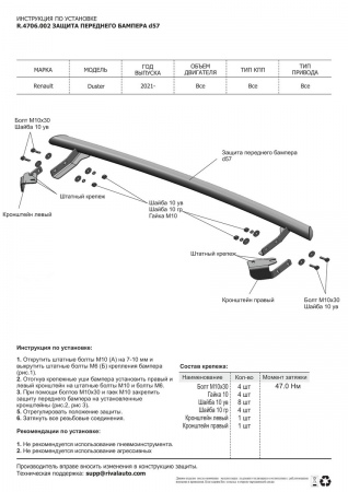 Защита переднего бампера от компании Rival полностью совместима с другими аксессуарами и навесным оборудованием производителя.