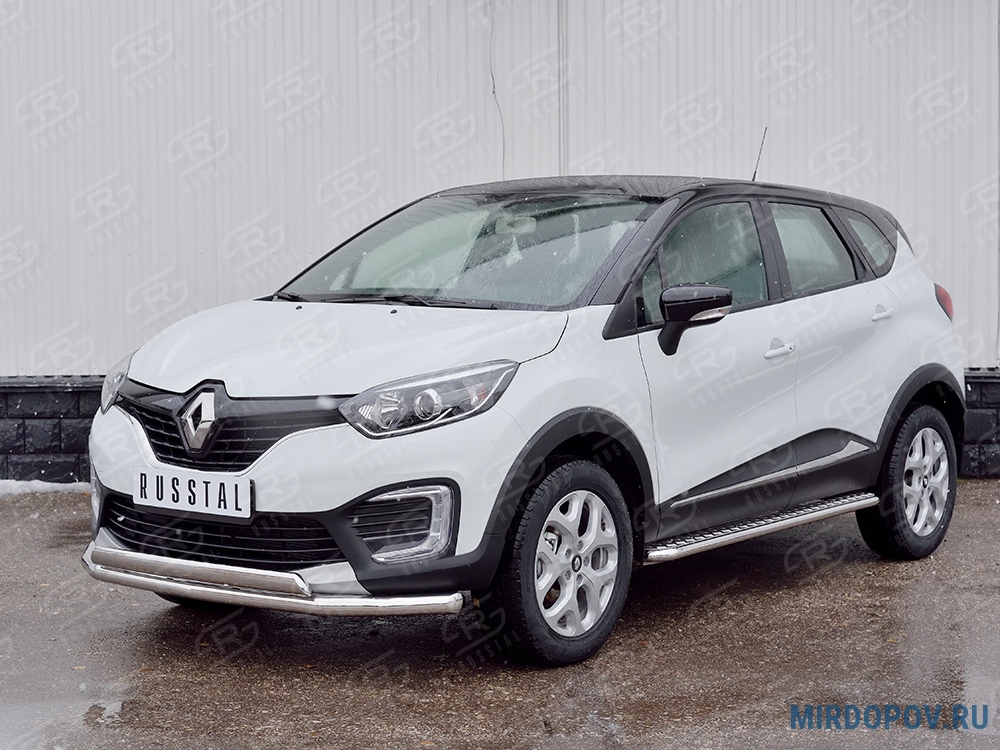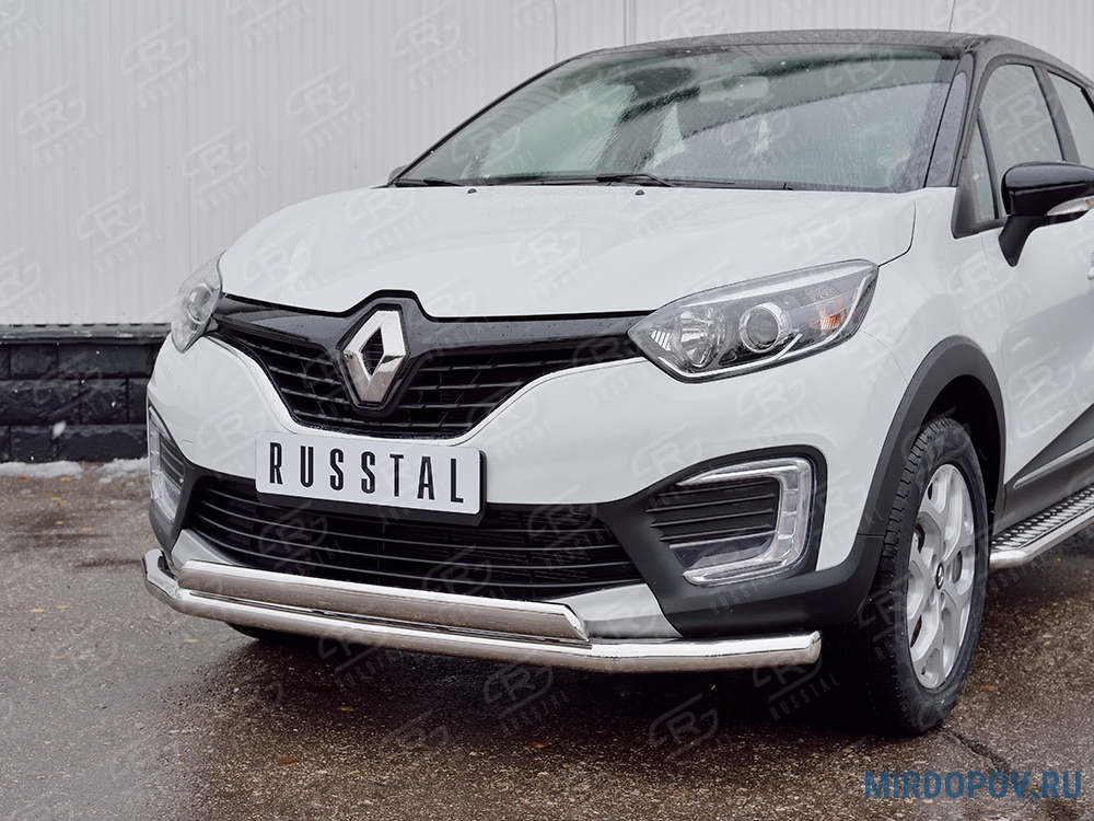 Защита переднего бампера d63 секция-75х42 дуга RUSSTAL Renault Kaptur (2016-2020) № RKPZ-002464