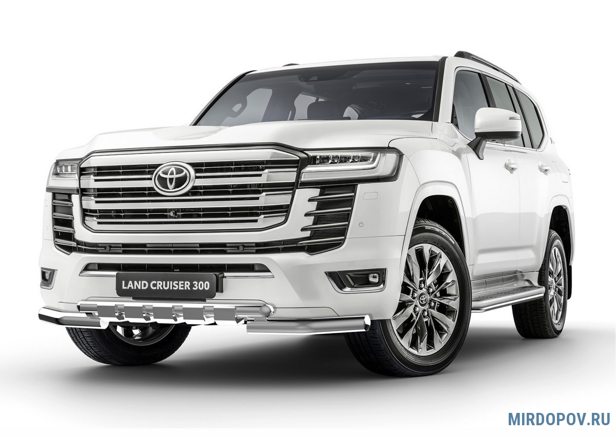 Защита переднего бампера d76+d57 с профильной защитой картера Rival для Toyota Land Cruiser 300 Anniversary (2021-2025) № R.5727.001