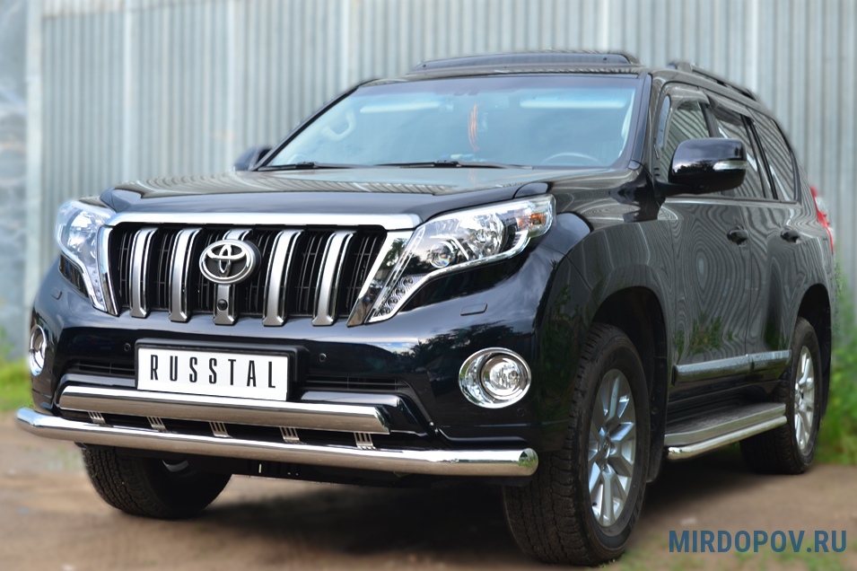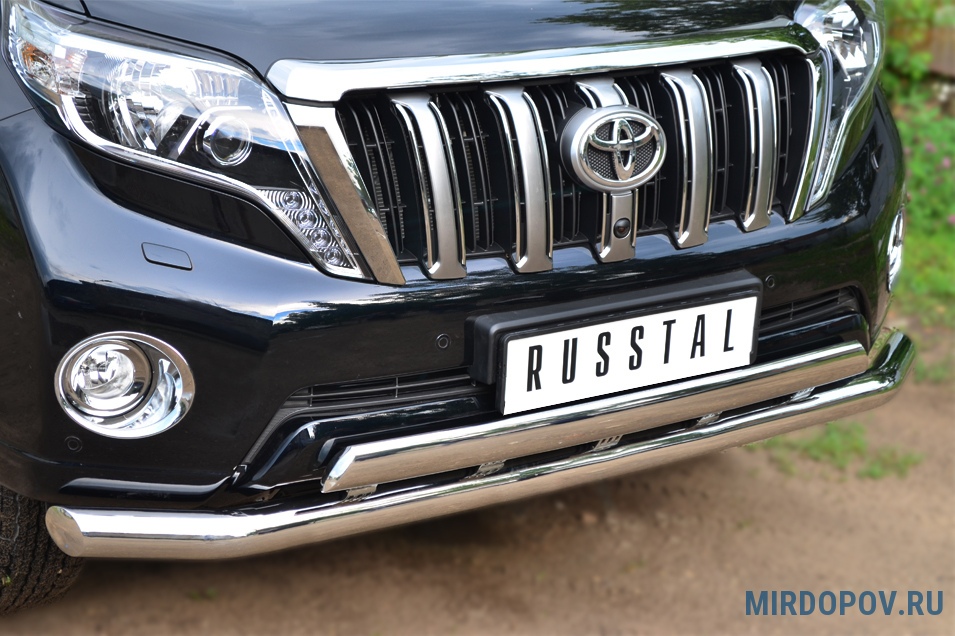 Защита переднего бампера d76 секции 75х42 дуга+декоративный паз RUSSTAL Toyota Land Cruiser Prado 150 (2014-2017) № LCPZ-001715