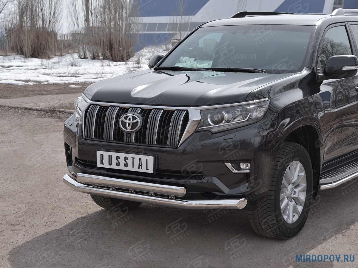 Защита переднего бампера d76 секции-d75х42 дуга RUSSTAL Toyota Land Cruiser Prado 150 (2017-2021) № LCPZ-002865