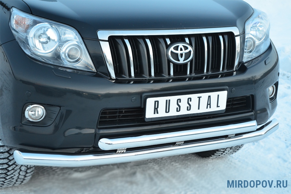 Защита переднего бампера d76 секцииd 63 секции декоративный паз RUSSTAL Toyota Land Cruiser Prado 150 (2009-2013) № PNZ-001613