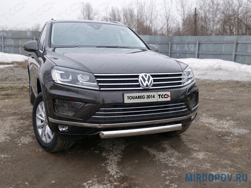 Защита переднего бампера (овальная) 75х42 мм Volkswagen Touareg (2014-2018) № VWTOUAR14-13