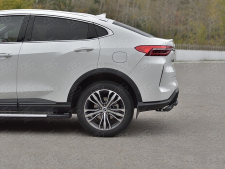 Защита заднего бампера с черным полимерным покрытием d63 дуга - d42 дуга RUSSTAL для Haval F7x (2022-2024) № HF7XZ-004008CH