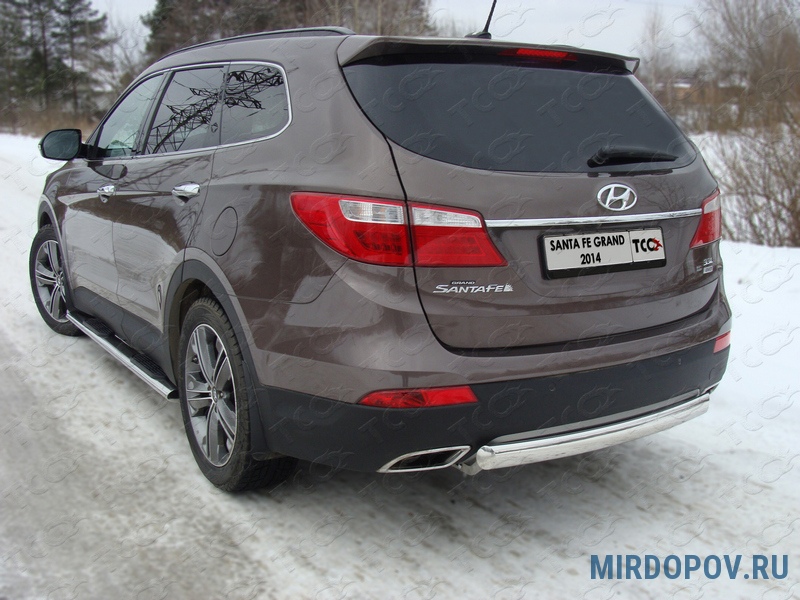 Защита заднего бампера (овальная) 75х42 мм Hyundai Grand Santa Fe (2014-2019) № HYUNSFGR14-13