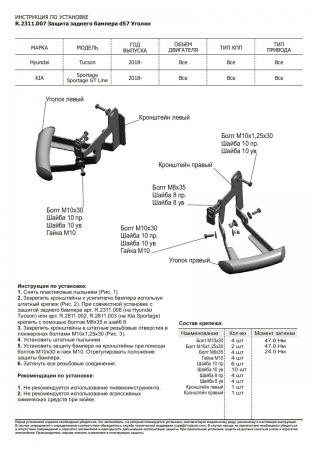 | Защита заднего бампера (труба/уголки) | 4000 руб. |