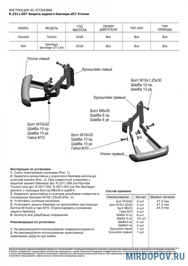 - Монтаж можно производить самостоятельно, используя элементы крепежа, которые имеются в комплекте. Установка производится в штатные места.