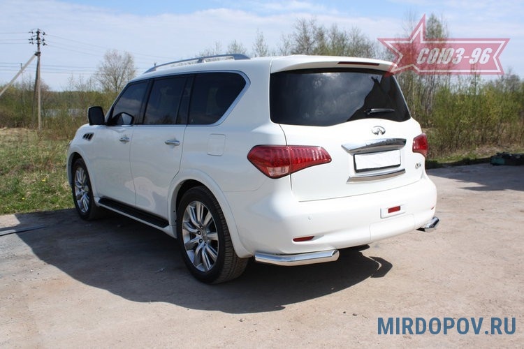 Защита заднего бампера уголки d60 одинарные Infiniti QX56 (2010-2014) № INQX.76.1280