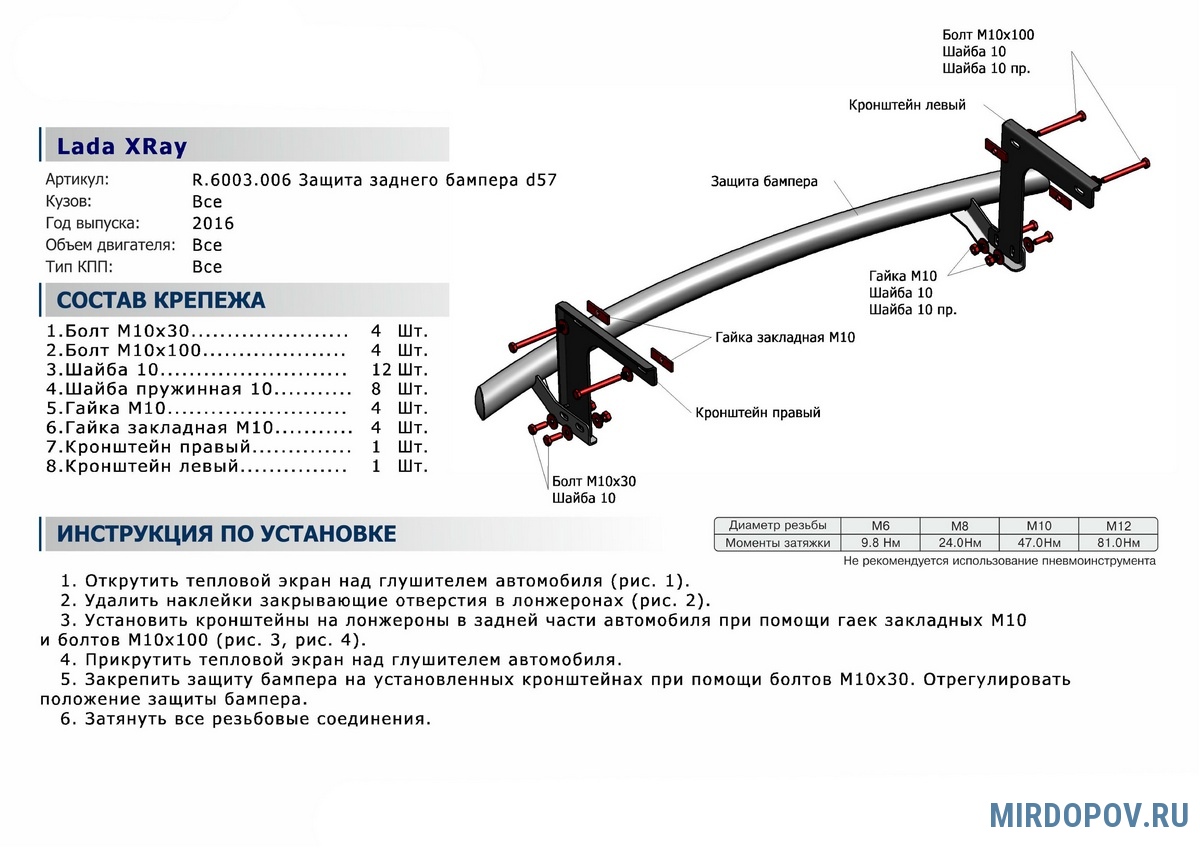 - Монтаж можно производить самостоятельно, используя элементы крепежа, которые имеются в комплекте. Установка производится в штатные места.