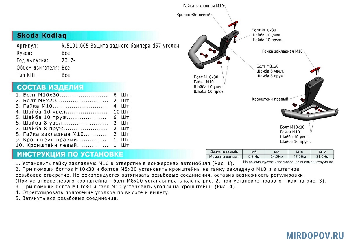 - Монтаж можно производить самостоятельно, используя элементы крепежа, которые имеются в комплекте. Установка производится в штатные места.