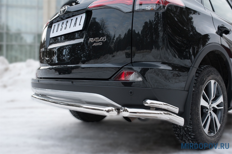 Защита заднего бампера уголки d63 секции d42 секции RUSSTAL Toyota RAV4 (2015-2019) № TR4Z-002204
