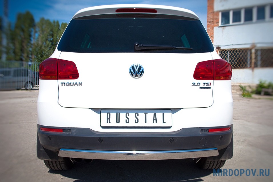 Защита заднего бампера d75х42 овал RUSSTAL Volkswagen Tiguan Sport & Style (2011-2016) № VGZ-000989