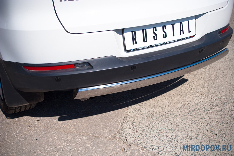 Защита заднего бампера Russtal – навесное оборудование, которое дает автолюбителям возможность исключить появление на бампере всевозможных повреждений. На лакокрасочном покрытии авто в процессе эксплуатации могут появляться царапины, сколы, потертости или вмятины. Чтобы этого не случилось целесообразно купить защиту заднего бампера на автомобиль.