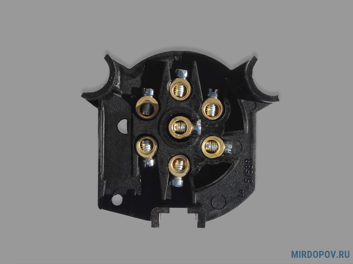 Предназначена для подключения электрики прицепного устройства. Корпус розетки изловлен из высококачественного пластика, соединительные контакты изготовлены из латуни.